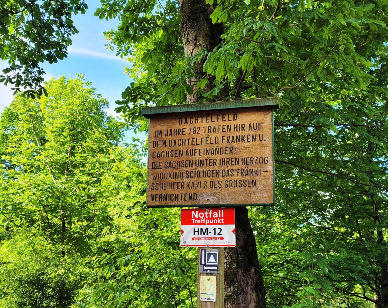 Weiter geht es durch die tiefen Süntelwälder, vorbei an großen Bärlauch-Feldern hoch zum Dachtelfeld, einer riesigen Hochebene, auf der im Jahre 782 nChr. das Herr der Sachsen das ansonsten überlegene Herr der Franken vernichtend geschlagen haben soll.